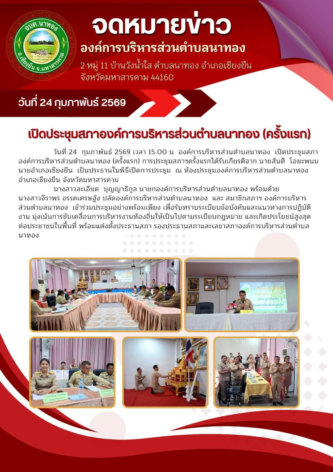 #เปิดประชุมสภาองค์การบริหารส่วนตำบลนาทอง (ครั้งแรก) วันที่24 กุมภาพันธ์ 2569 เวลา 15.00 น องค์การบริหารส่วนตำบลนาทอง เปิดประชุมสภาองค์การบริหารส่วนตำบลนาทอง (ครั้งแรก) การประชุมสภาฯครั